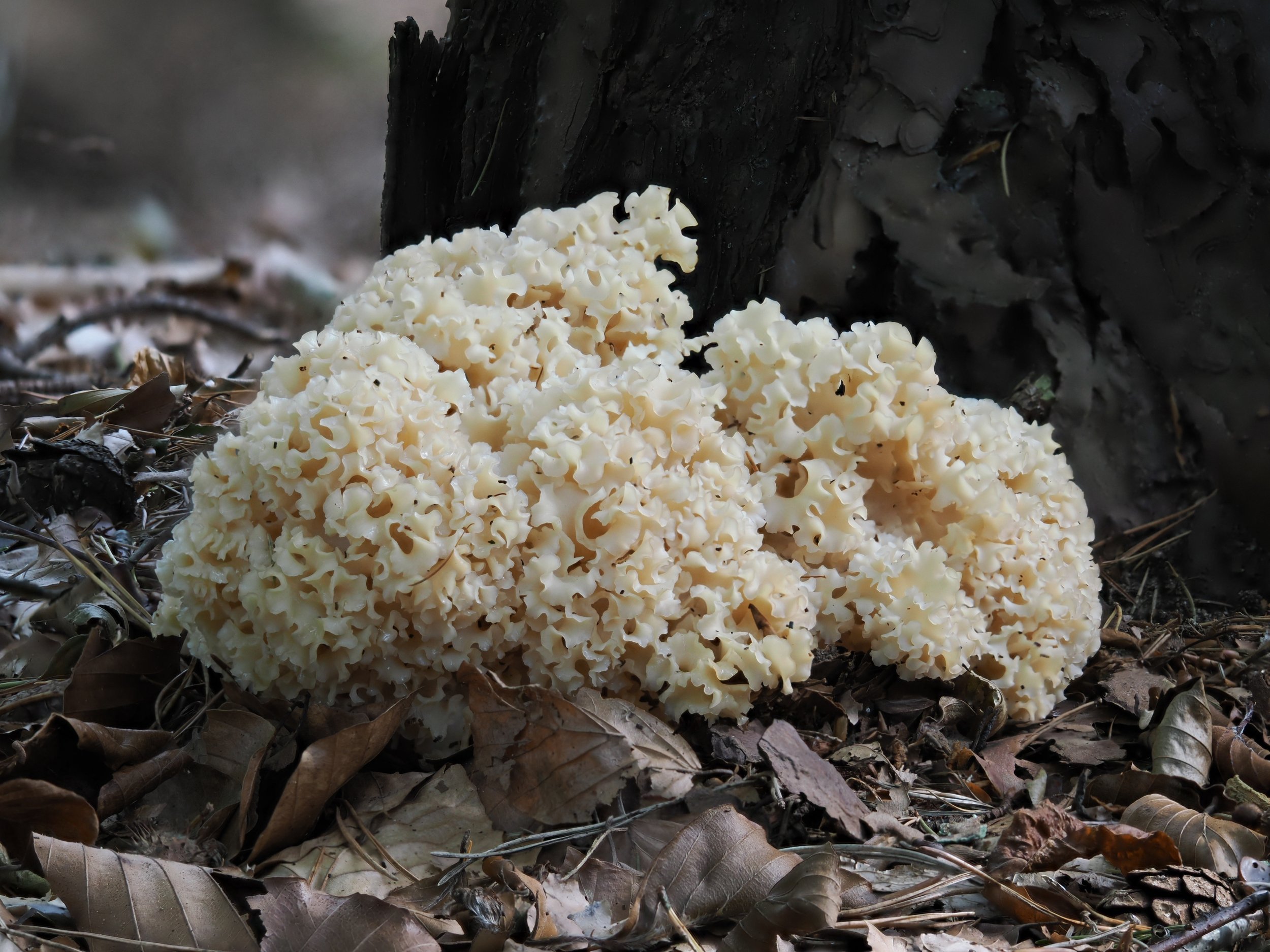Als je door het bos loopt kom je geregeld afval tegen, maar als je denkt dat iemand een grote spons (of bloemkool) heeft achtergelaten - kijk dan nog maar een keer. Deze grote, gelobde zwam, beige van kleur, met krullerige randen is namelijk de Sponszwam.