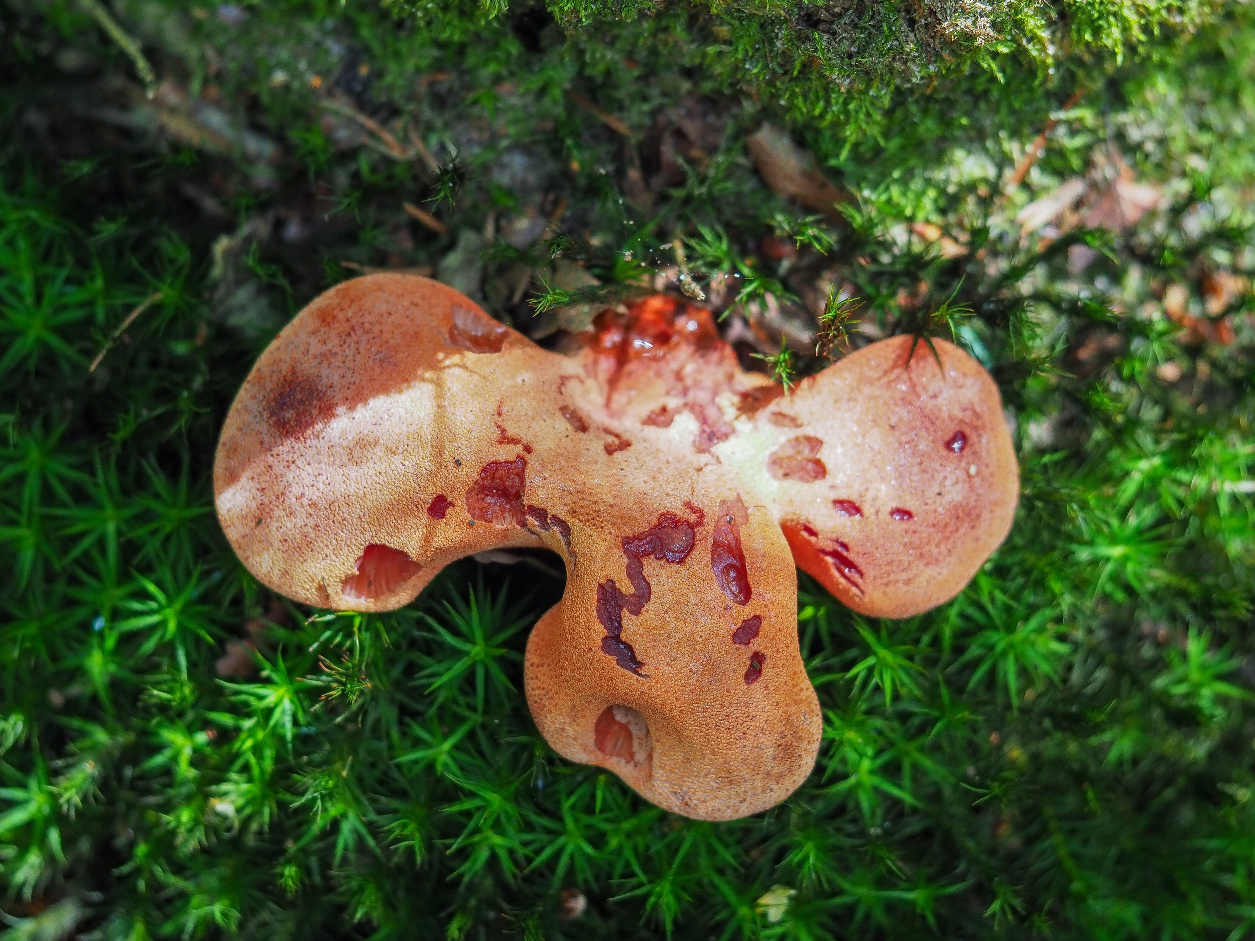 Een paddenstoel die eruitziet alsof hij thuishoort in een slagerij in plaats van op een boomstam? Hij ziet eruit als een stuk rauw vlees, bloedt ook nog een beetje, maar is gewoon een paddenstoel – en eetbaar ook nog. Dit is de Biefstukzwam!